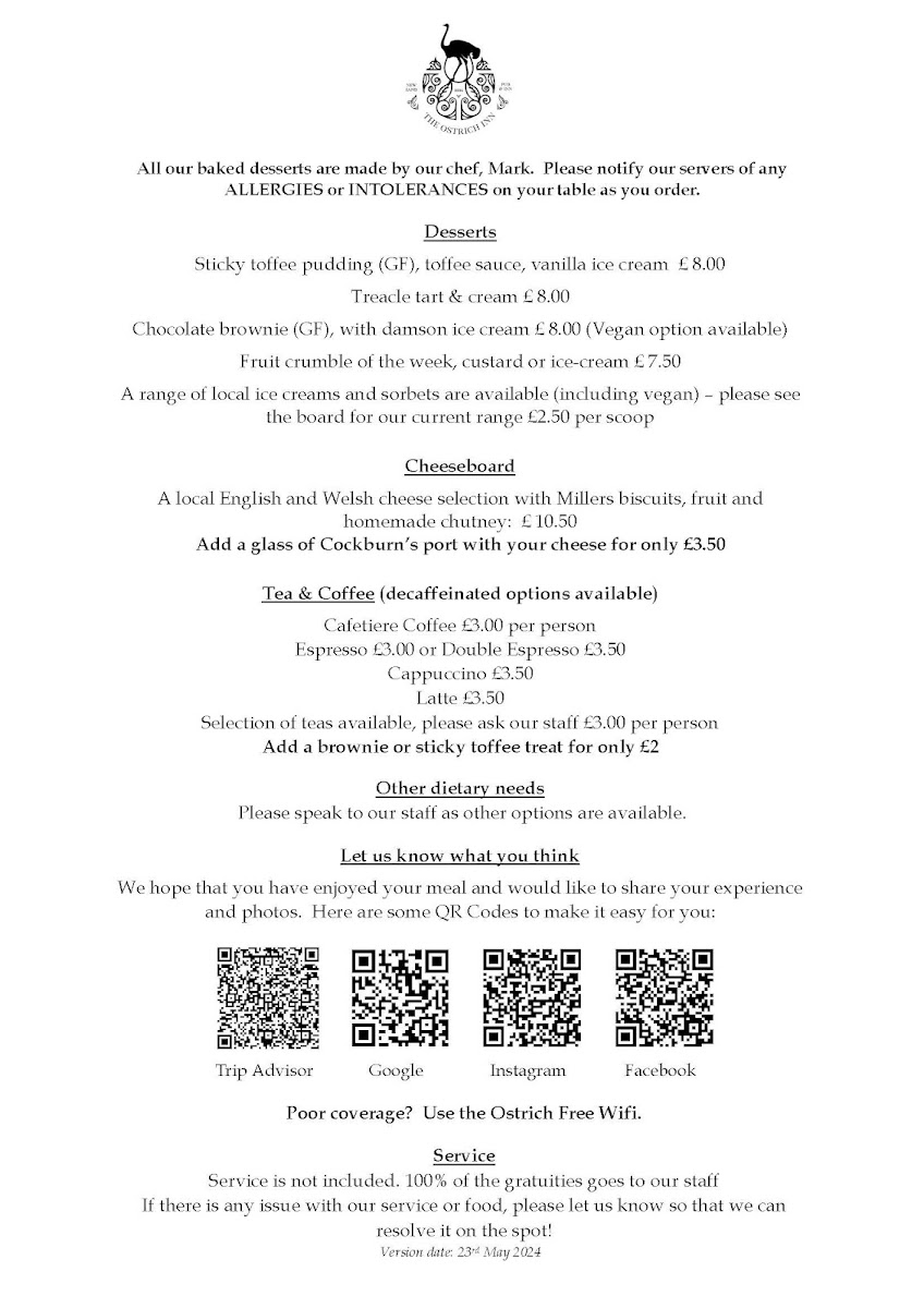 The atmosphere is inviting, bolstered by friendly and attentive staff who contribute to the overall warmth of the pub. Guests also appreciate the thoughtful options for those with dietary restrictions, such as gluten-free draught beer and meals. Whether you're popping in for a cozy dinner or planning a special outing, The Ostrich Inn promises a delightful experience that will leave you eager to return.